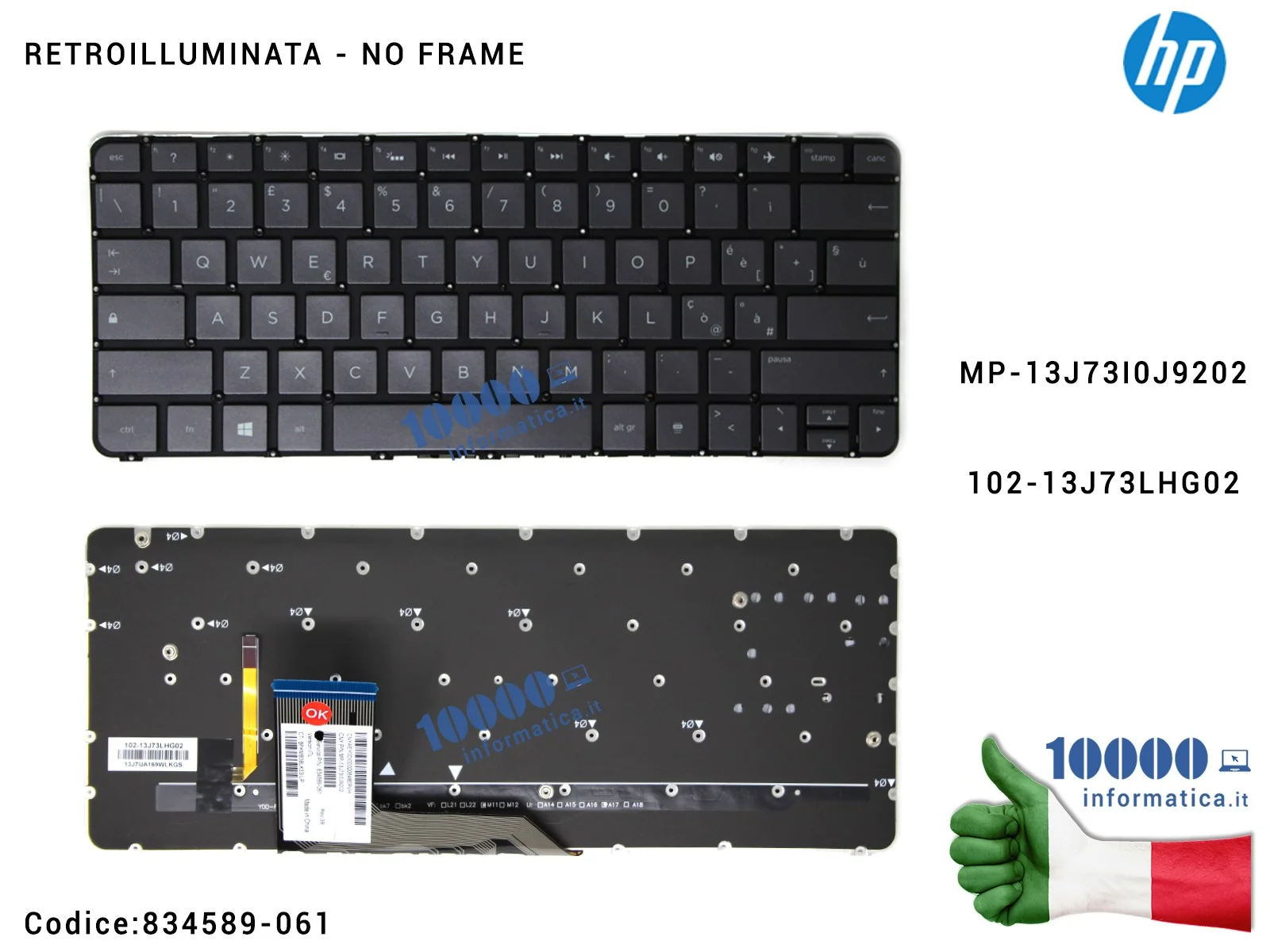 Tastiera Italiana Retroilluminata (NERA) HP Spectre x360 13-4000 13-4100 13-4200 (SENZA FRAME) 834589-061 MP-13J73I0J9202 102-13