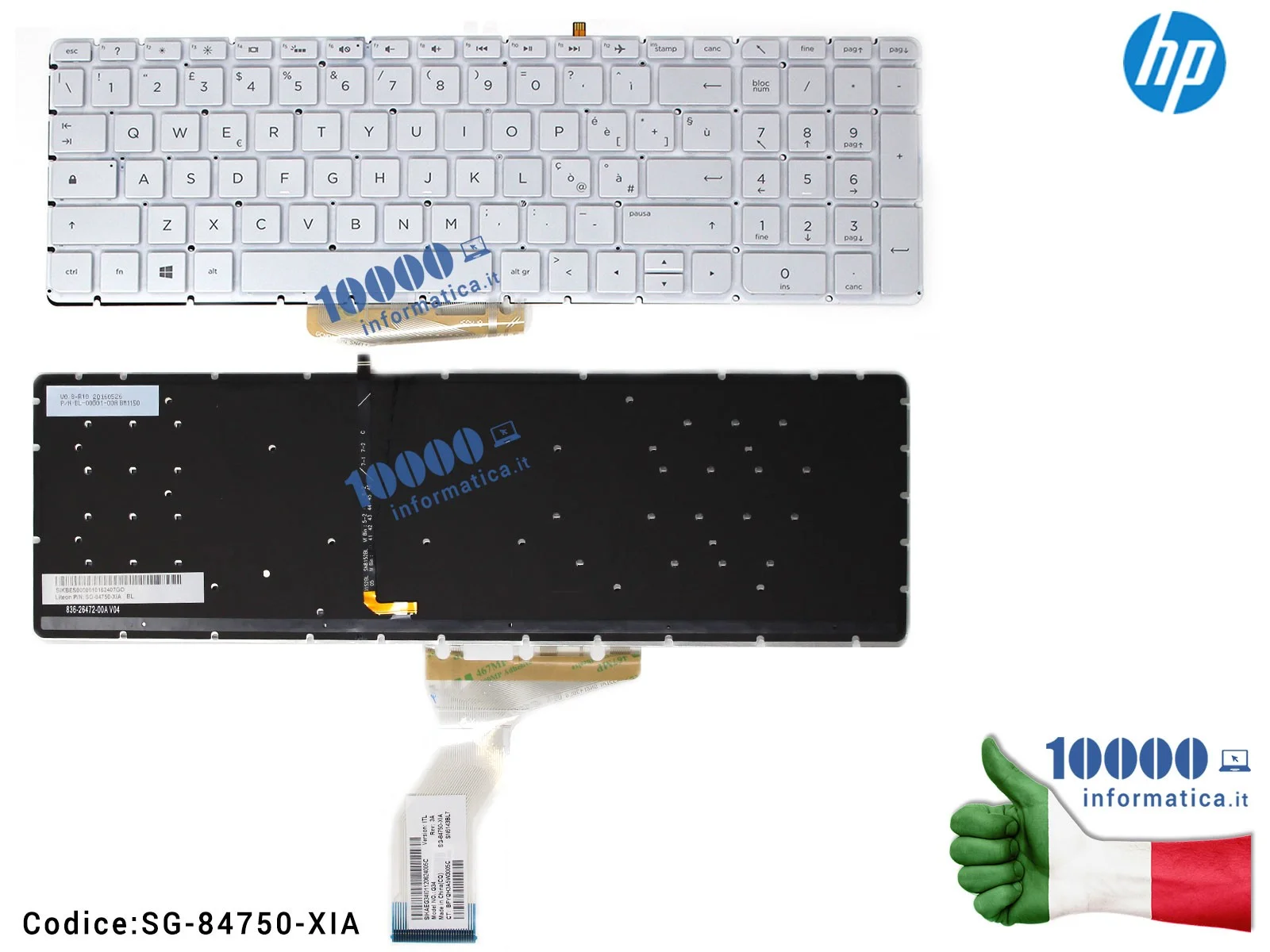 Tastiera Italiana Retroilluminata (BIANCA) HP Pavilion 15-AB 15-AE 15-AH 15-AK 15-AN 15-AQ 15-AS 15-AU 15-AW 15-BC 15-BK 15-UN [