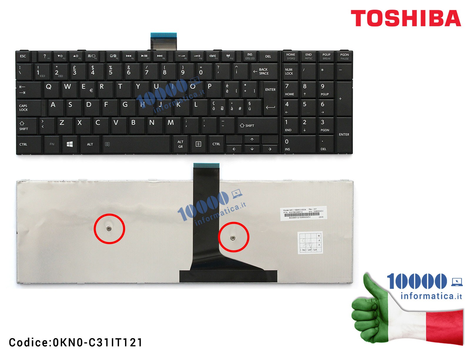 Tastiera Italiana TOSHIBA Satellite L50-A C70 S70 S50 S55 S50-A M50 C70-A (NERO) [SENZA FRAME]
