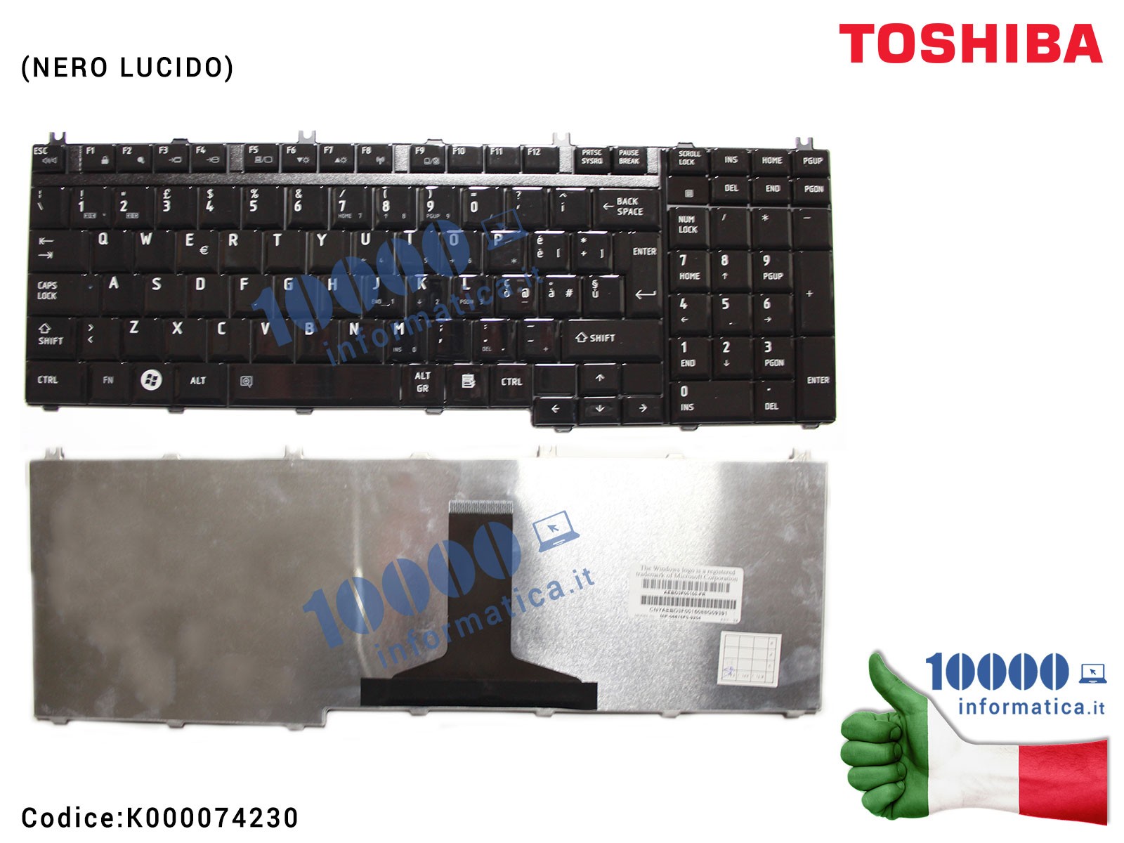 Tastiera Italiana TOSHIBA Satellite A500 A500D P300 P305 A500 L500 L350 L355 P500 (NERO LUCIDO)