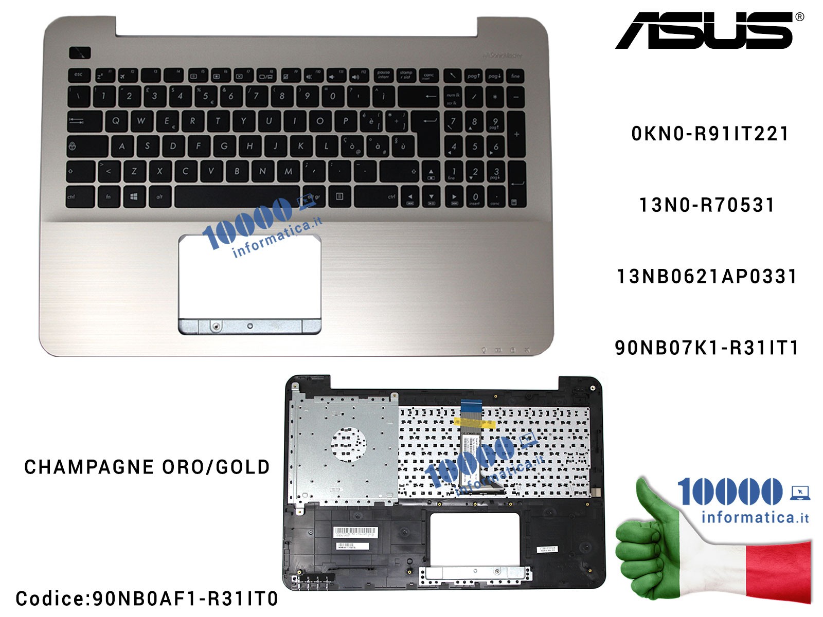 Tastiera Italiana Completa di Top Case Superiore ASUS X555UA X555UJ X555UB (ORO/GOLD) 13NB0621AP0331 13N0-R70531
