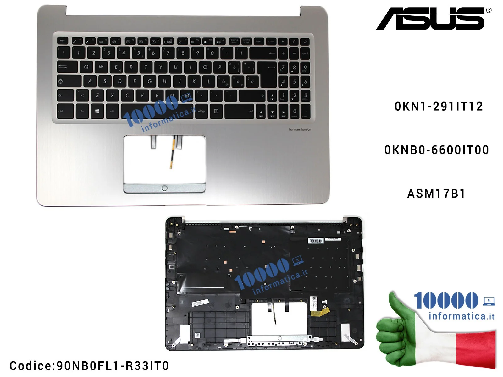 Tastiera Italiana Completa di Top Case Superiore (GRIGIO ARDESIA) ASUS VivoBook Pro 15 N580 N580V N580VD X580 X580V X580VD (SLAT