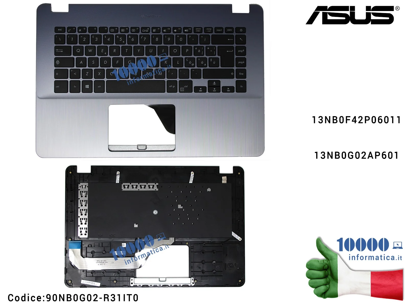 Tastiera Italiana Completa di Top Case Superiore ASUS VivoBook X505B (Star Grey) X505BA X505BP F505BA S505BA F505B X505B [SILVER