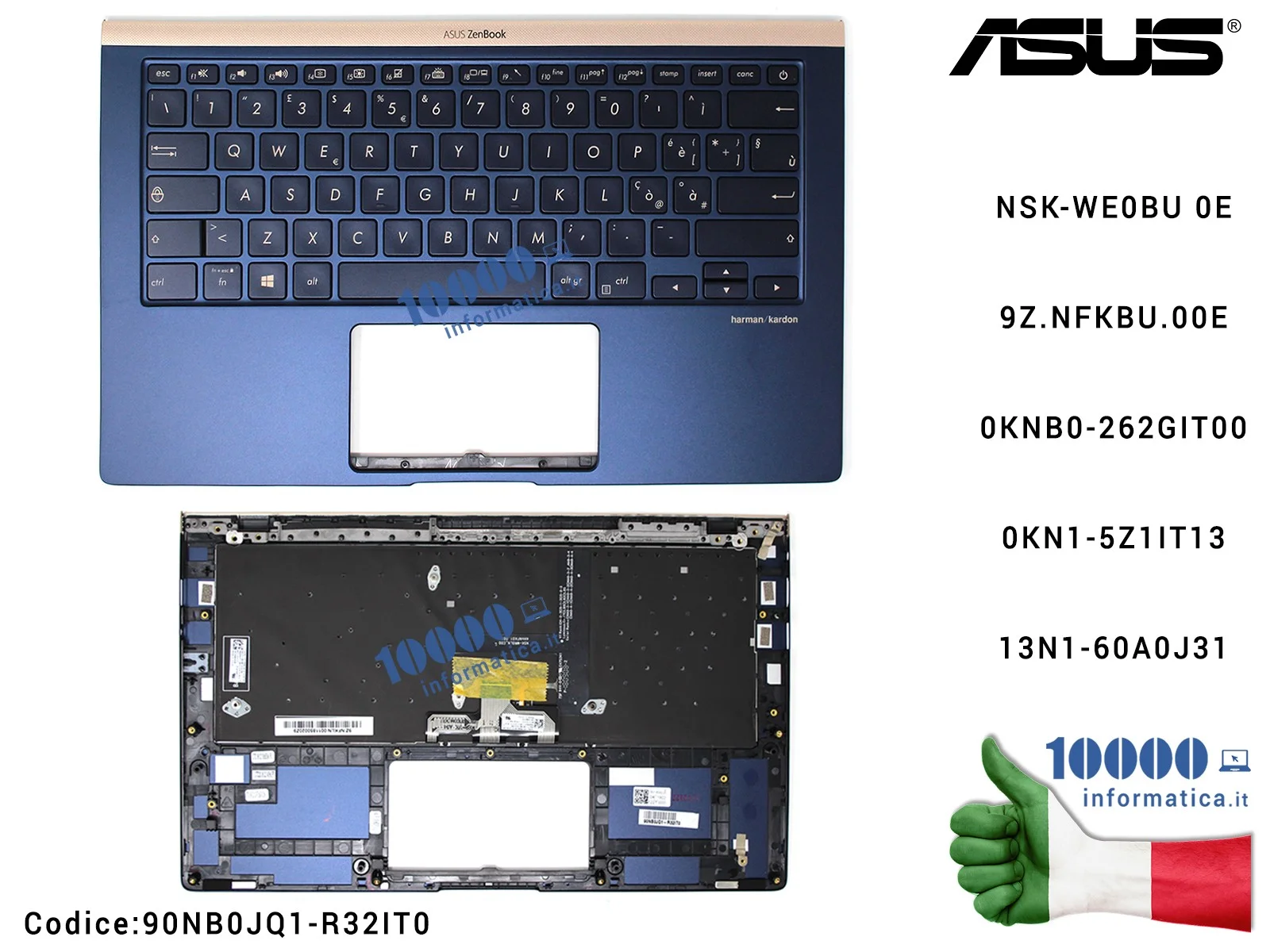 Tastiera Italiana Retroilluminata Completa di Top Case Superiore ASUS ZenBook 14 UX433 UX433F UX433FN (Royal Blue) NSK-WE0BU 0E