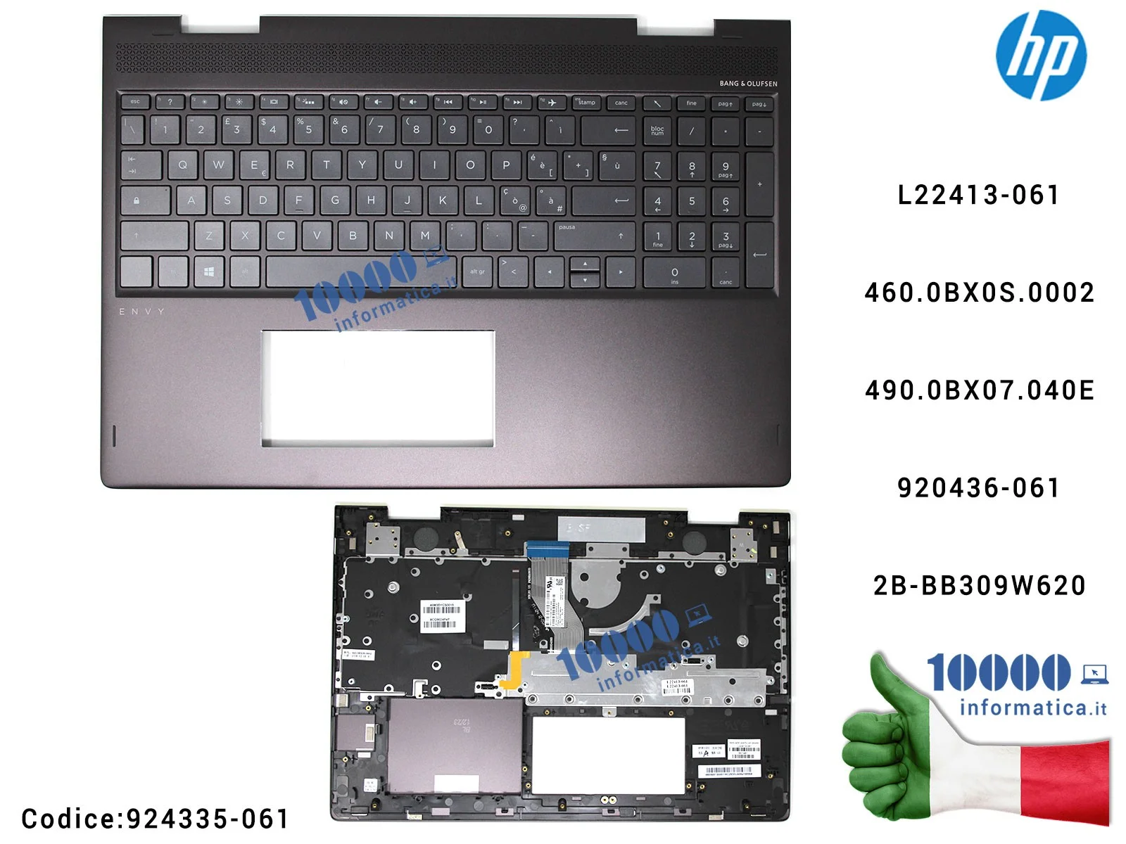 924335-061 Tastiera Italiana Completa di Top Case Superiore Palmrest HP Envy X360 15-BQ 15Z-BQ 15M-BQ TPN-W128