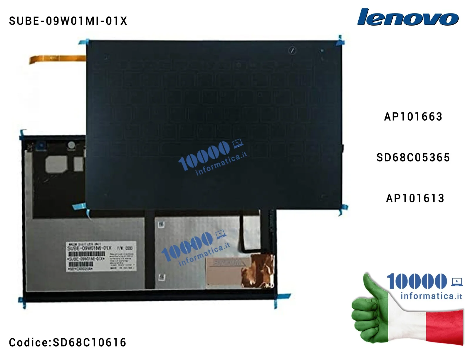 Tastiera Italiana Secondo Display LENOVO Yoga Book 2 in 1 YB-X90 YB-X91F YB-X91L ZA0V ZA0W ZA16 Wacom Digitizer Unit SUBE-09W01M