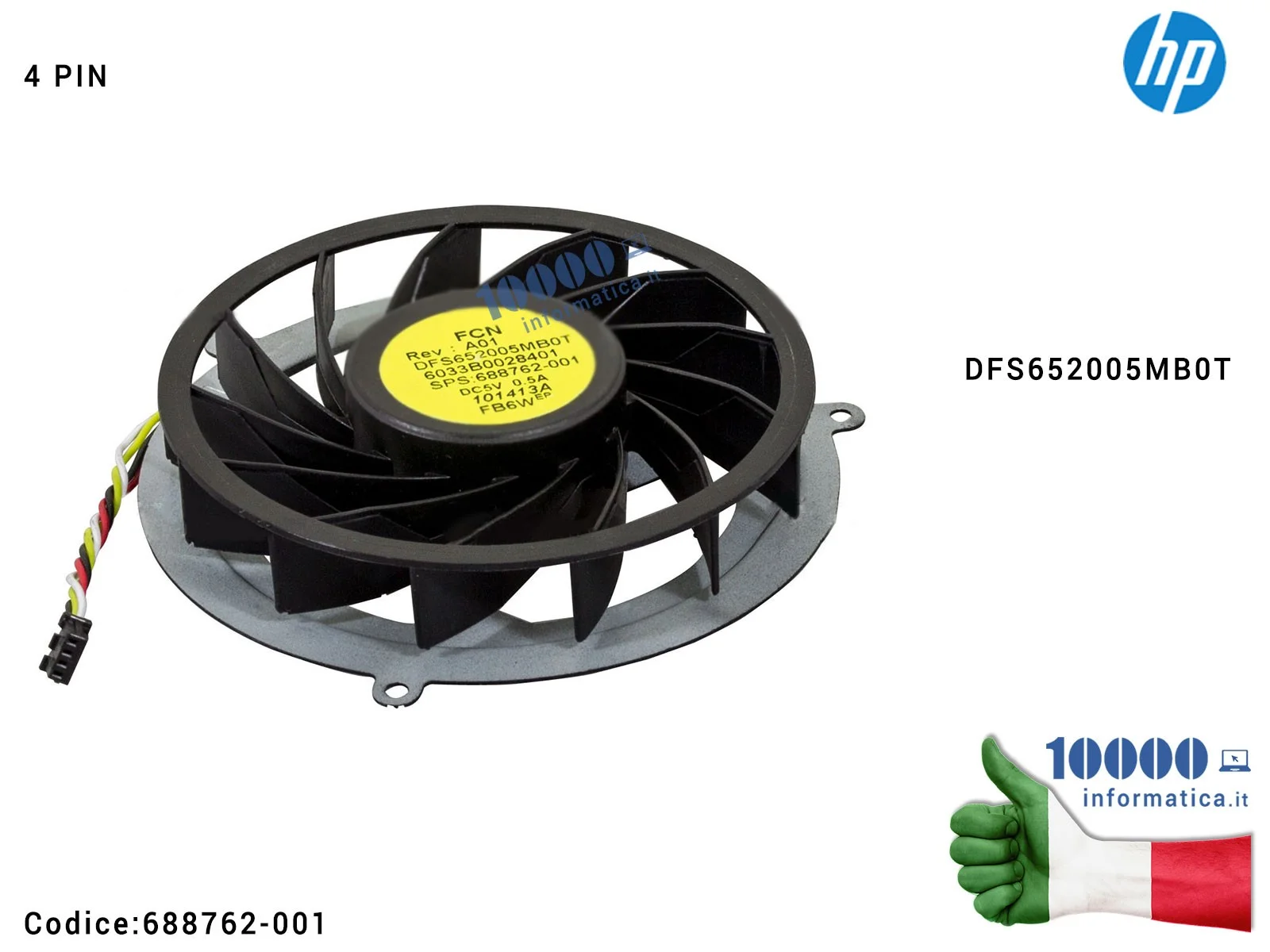 Ventola di Raffreddamento Fan CPU HP EliteBook 8770W 8740W 8675W 8760W [4 PIN] DFS652005MB0T