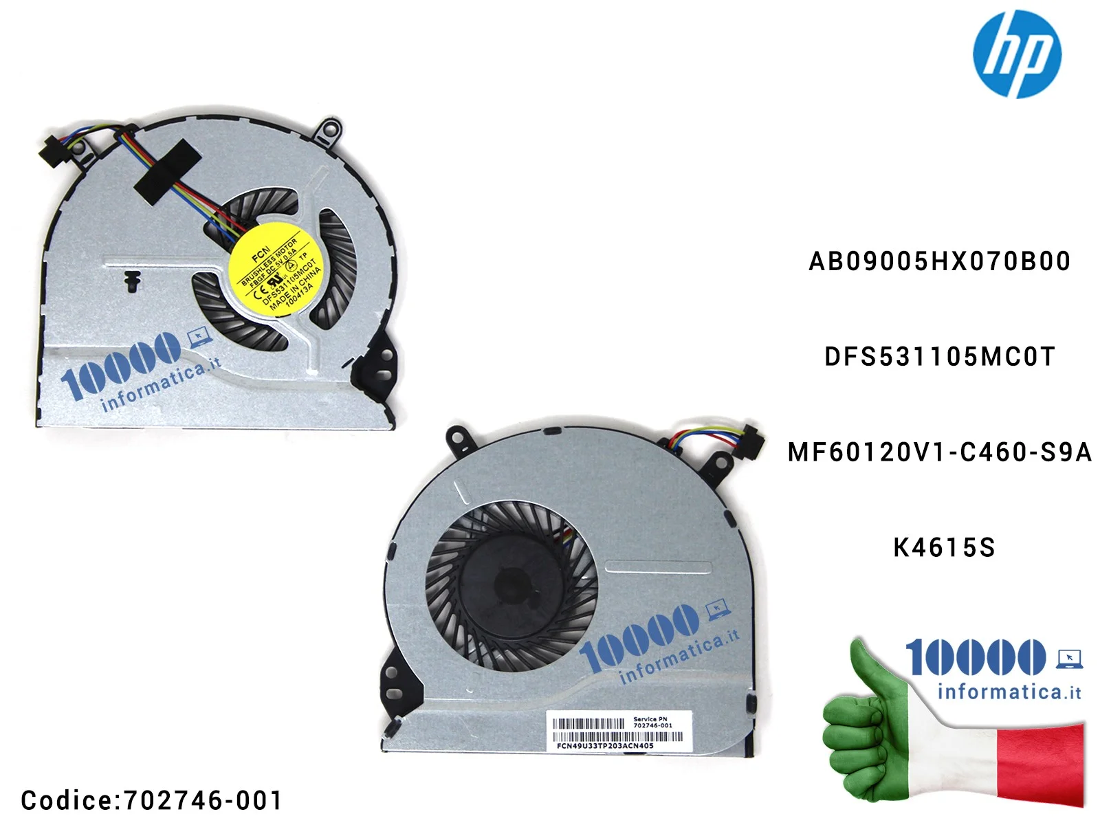 Ventola Fan CPU HP 14-B 15-B 14-1000 15-1000 15T-B Pavilion SleekBook 702748-001 DFS531105MC0T MF60120V1-C460-S9A K4615S