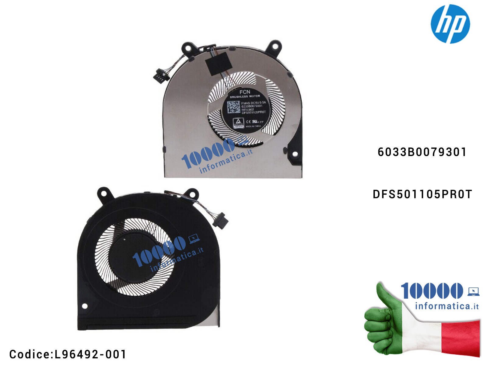 L96492-001 Ventola Fan CPU HP x360 14M 14-DW 14M-DW ZBook Fury 15 G7 TPN-I137 L96492-001 6033B0079301 DFS501105PR0T