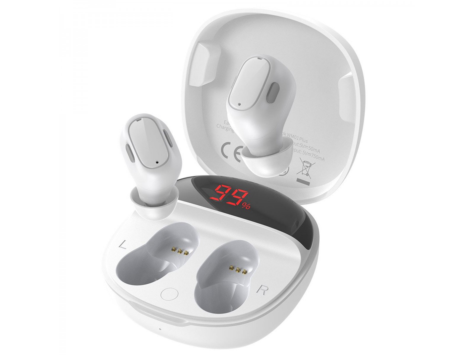 Cuffie wireless ultra-piccole e leggere. La custodia di ricarica è di dimensioni compatte, il che la rende molto facile da trasportare, ci sarà spazio per essa in ogni zaino o borsa. Disponibile in tre versioni di colore: bianco, nero e rosa. Ora, grazie al display, puoi vedere per quanto tempo suoneranno le cuffie.